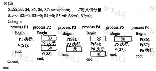 若用PV操作控制这6个进程的同步与互斥的程序如下,那么程序中的空①和空②处应分别为( )
