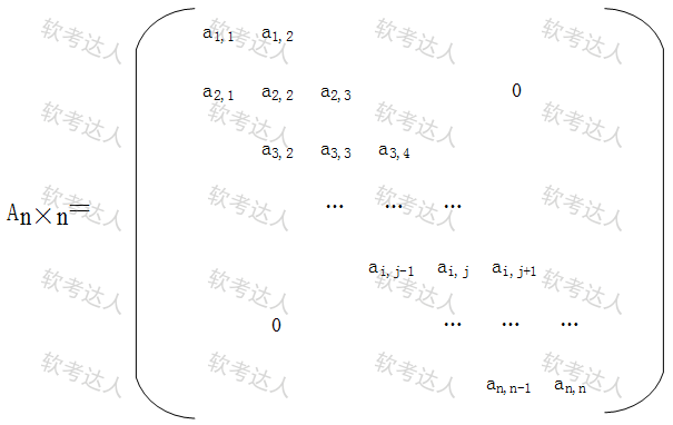 某n阶的三对角矩阵A如下图所示,按行将元素存储在一维数组M中,设a1,1存储在M[1],那么ai,j (1<=i,j<=n且ai,j位于三条对角线中)存储在M( )。