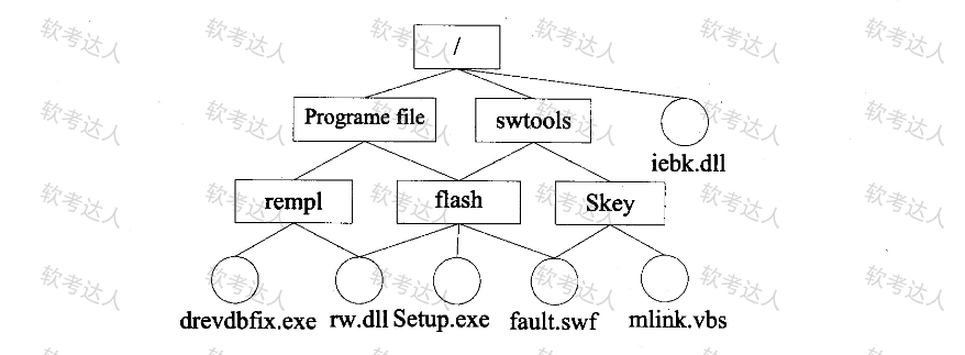 若某文件系统的目录结构如下图所示,假设用户要访问文件rw.dll,且当前工作目录为swtools,则该文件的全文件名为( ),相对路径和绝对路径分别为( )。