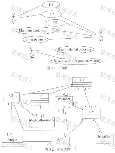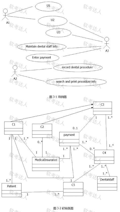 根据说明中的描述,给出图3-1中A1~A3所对应的参与者名称和U1~U3所对应的用例名称。