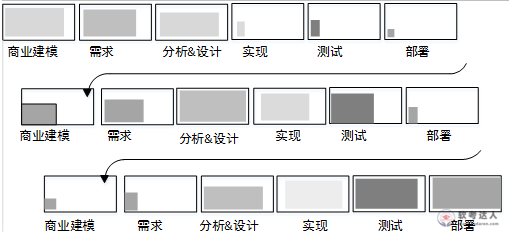 小正是某软件开发项目的项目经理,在组内讨论项目所采用的开发方法时,项目组成员最后采取了下图的模式。他们采取的是( )。
