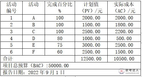 下表给出了某信息化建设项目到2022年9月1日为止的成本执行(绩效)数据。如果当前的成本偏差是非典型的,则完工估算(EAC)为( )元。