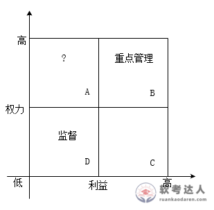 在进行项目干系人分析时,经常用到权力/利益分析法,对待属于第A区域的项目干系人应该采取的策略是( )。