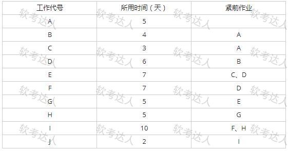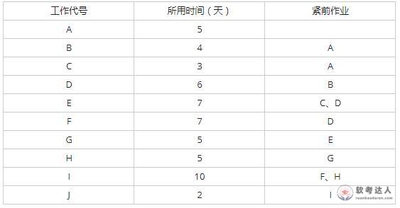 某工程有10项工作,其相互关系如下表所示,则该项目工期为( )天。