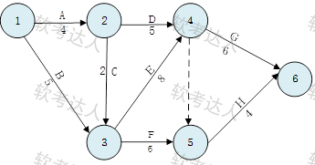 某工程的双代号网络计划如下图所示,则其关键路径时间为( )天,作业F的自由时差为( )天,节点5的最迟完成时间为( )天。