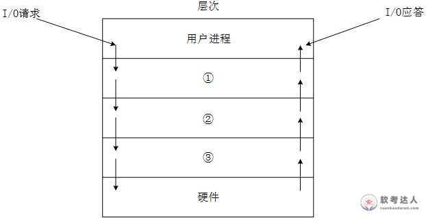 I/O设备管理软件一般分为4个层次,如下图所示。图中①②③分别对应( )。