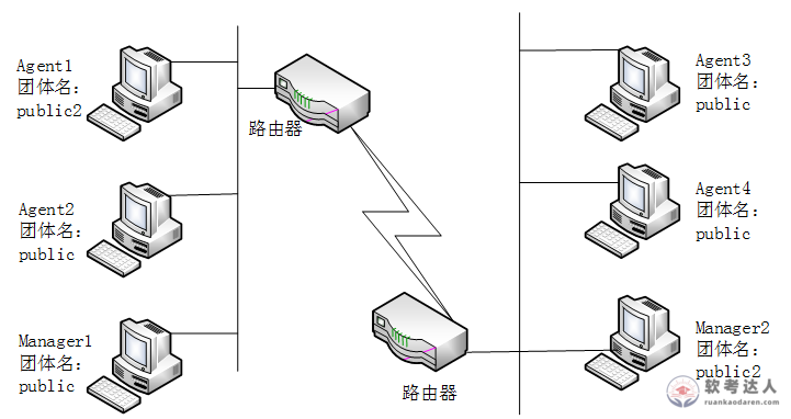在下图的SNMP配置中,能够响应Manager2的getRequest请求的是( )。