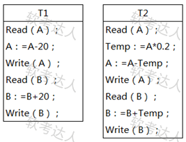 数据库系统必须控制事务的并发执行,保证数据库 ( ) 。假设事务 T1、T2分别对数据 A 和 B 进行的操作如下图所示,事务 T1 与 T2 间的并发调度为可串行化调度的是 ( )。