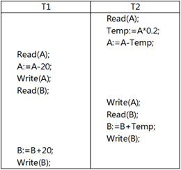 数据库系统必须控制事务的并发执行,保证数据库 ( ) 。假设事务 T1、T2分别对数据 A 和 B 进行的操作如下图所示,事务 T1 与 T2 间的并发调度为可串行化调度的是 ( )。