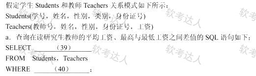 a.査询在读研究生教师的平均工资、最高与最低工资之间差值的SQL语句如下: