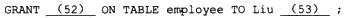 将表employee中name列的修改权限赋予用户Liu,并允许其将该权限授予他人,应使用的SQL语句为: