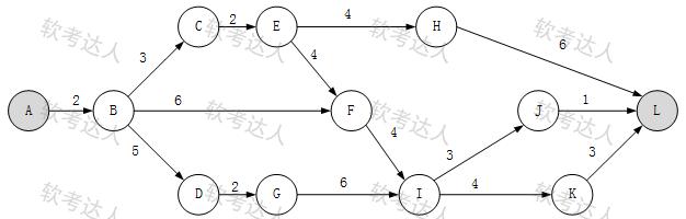某软件项目的活动图如下图所示,其中顶点表示项目里程碑,连接顶点的边表示包含的活动,边上的数字表示活动的持续天数,则完成该项目的最少时间为( )天。活动EH和IJ的松弛时间分别为( )天。