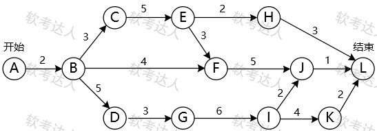 某软件项目的活动图如下图所示,其中顶点表示项目里程碑,连接顶点的边表示包含的活动,边上的数字表示活动的持续时间(天),则完成该项目的最少时间为( )天。活动BD最多可以晚开始( )天而不会影响整个项目的进度。