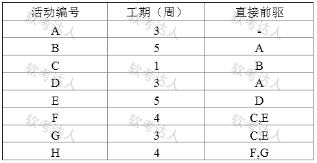 某项目包含的活动如下表所示,完成整个项目的最短时间为( )周。不能通过缩短活动( )的工期,来缩短整个项目的完成时间。