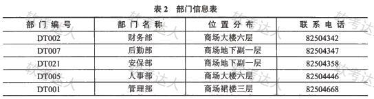 2.每个商场包含不同的部门,部门需要记录的信息包括部门编号(不同商场的部门编号不同)、部门名称、位置分布和联系电话。某商场的部门信息如表2所示。