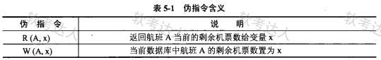 某航空售票系统负责所有本地起飞航班的机票销售,并设有多个机票销售网点。各售票网点使用相同的售票程序。假设售票程序中用到的伪指令如表5-1所示。