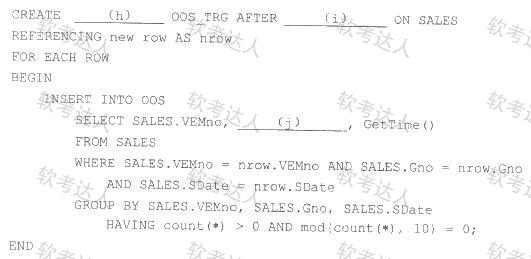 (2)每售出一件商品,就自动向销售单中添加一条销售记录。如果一天内某个售货机上某种商品的销售记录达到10条,则表明该售货机上该商品已售完,需要通知系统立即补货,通过自动向缺货单中添加一条缺货记录来实现。