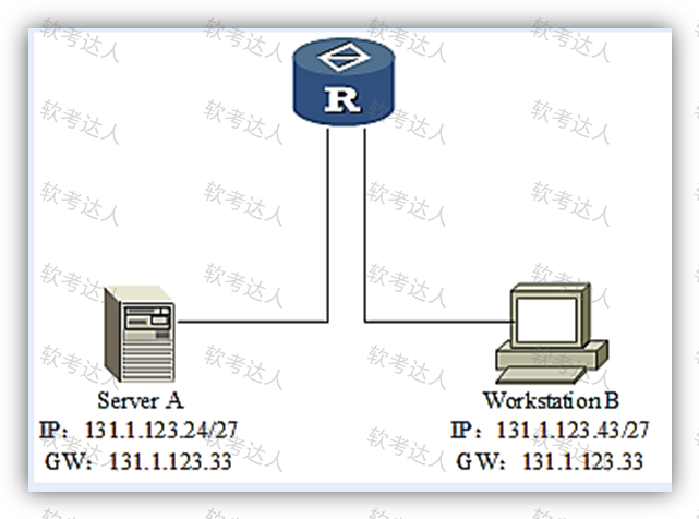 参见下图的网络配置,发现工作站B无法与服务器A通信,什么故障影响了两者互通?( )。