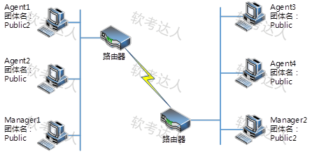 在下图的SNMP配置中,能够响应Manager2的getRequest请求的是( )。