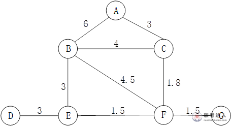 某乡镇有7个村A~G,各村间的道路和距离(单位:公里)如下图,乡政府决定在其中两村设立诊所,使这7村群众看病最方便(即最远的村去诊所的距离a最短)。经过计算,a=( )公里。