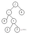 与算术表达式3 - (2+7) /4对应的二叉树为( )。