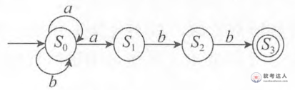 某个不确定有限自动机(s0为初态,s3为终态)如下图所示,( )是该自动机可识别的字符串(即从初态到终态的路径中,所有边上标记的字符构成的序列)。