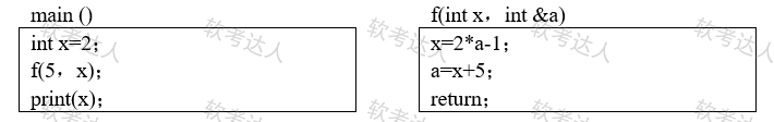 函数main()、f()的定义如下所示。调用函数f()时,第一个参数采用传值(call by value) 方式,第二个参数采用传引用(call by reference)方式,main()执行后输出的值为( )。