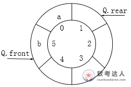 某循环队列Q的定义中用front和rear两个整型域变量表示队列状态,其中front 指示队头元素的位置、rear指示队尾元素之后的位置(如下图所示,front的值为5、rear 的值为1)。若队列容量为M (下图中M=6),则计算队列长度的通式为( )。