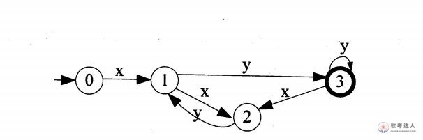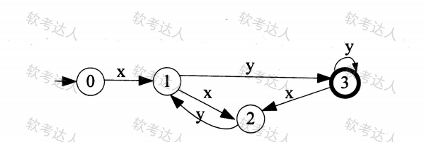 下图是一个有限自动机的状态转换图(0为初态、3为终态),该自动机可识别字符串( )(即找出从初态到终态的路径上所标记的字符序列)。
