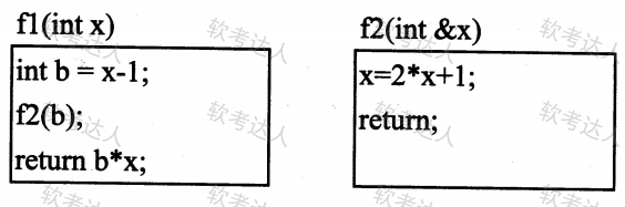 调用函数时若是引用调用方式,则是将( )。下面所定义的函数f1为值调用方式,函数f2为引用调用方式。若有表达式x=f1(5),则函数调用执行完成后,该表达式中x获得的值为( )。