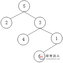 对下图所示的二叉树进行中序遍历(左子树,根结点,右子树)的结果是( )。