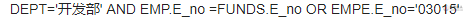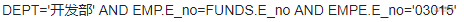 某企业职工关系EMP (E_no,E_name ,DEPT ,E_addr,E_tel)中的属性分别表示职工号、姓名、部门、地址和电话;经费关系FUNDS (E_no,E_limit, E_used) 中的属性分别表示职工号、总经费金额和已花费金额。若要查询部门为"开发部"且职工号为 "03015 "的职工姓名及其经费余额,则相应的 SQL 语句应为: