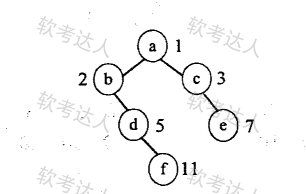 对二叉树中的结点如下编号:树根结点编号为1,根的左孩子结点编号为2、右孩子结点编号为3,依此类推,对于编号为i的结点,其左孩子编号为2i、右孩子编号为2i+1。例如,下图所示二叉树中有6个结点,结点a、b、c、d、e、f的编号分别为1、2、3、5、7、11。那么,当结点数为n(n>0)的( )时,其最后一个结点编号为2