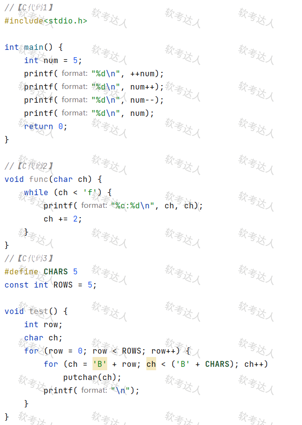 请给出调用C代码3中函数test()后的输出结果。