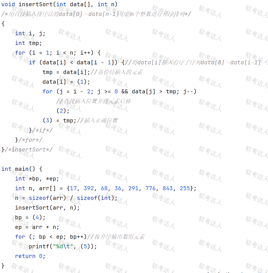 下面函数insertSort用 直接插入 排序对整数序列进行升序 排列,在main函数中调用insertSort并输出 排序结果。