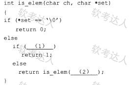 递归函数is_elem(char ch,char*set)的功能是判断ch中的字符是否在set表示的字符集合中,若是,则返回1,否则返回0。