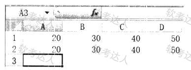 在Excel的工作表中有如下图所示的数据,假设用户在A3单元格里输入公式==SUMIF(A1:D2,">20",A1:D2),并按下回车键后,那么在A3中显示的数值是( )。