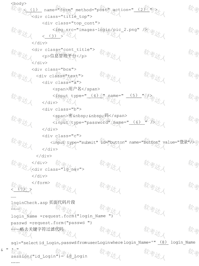 以下所示页面为用户登录的部分代码片段。请仔细阅读该段代码,将( )~( )的空缺代码补齐。