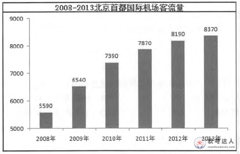 下图是北京机场2008到2013年客流量的统计图,从该图中无法看出( )。