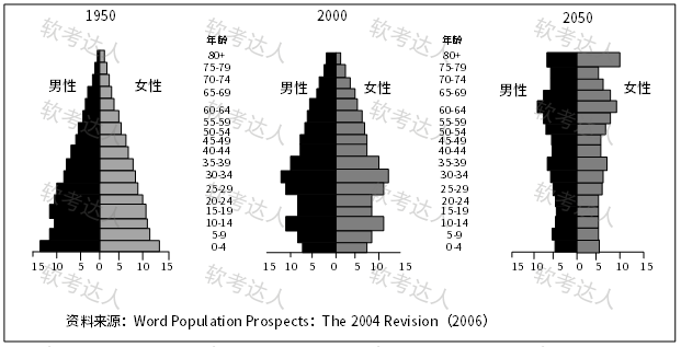 根据某机构的统计与推测,我国人口中男性和女性各个年龄的百分比如下图。根据该图,以下叙述中正确的是( )。