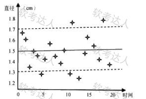 在某机床上加工一批零件,要求其直径控制在1.5±0.2cm。检验员定时抽査测量了产品的直径,并绘制了如下的质量控制图。检验结论是:有( )次检查发现质量问题,需要进一步查明原因并改进。