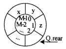 设循环队列Q的定义中有rear和size两个域变量,其中,rear指示队尾元素之后的位置,size表示队列的长度,如图所示(队列长度为3,队头元素为x)。设队列的存储空间容量为M,则队头元素的位置为( )。