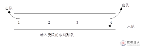 输入受限的双端队列是指只有一端可以进行入队操作而从两端都可以进行出队操作的队列,如下图所示。对于输入序列1 2 3 4,经过一个初始为空且输入受限的双端队列后,不能得到的输出序列为( )。