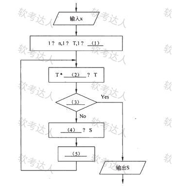 设x位于区间(0, 1),该流程图的算法要点是逐步累积计算每项