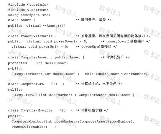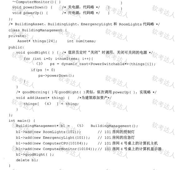 已知某公司主要有两大类耗电资产(Asset):计算机(ComputerAsset)和建筑物(Building Asset)。为了节约能源,通过控制各种电源,将可关闭的房灯、计算机显示器等在夜间关闭。