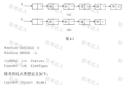 例如,某含头结点单链表L如图4-1 (a)所示,删除第3个元素结点后的单链表如图4-1 (b)所示。