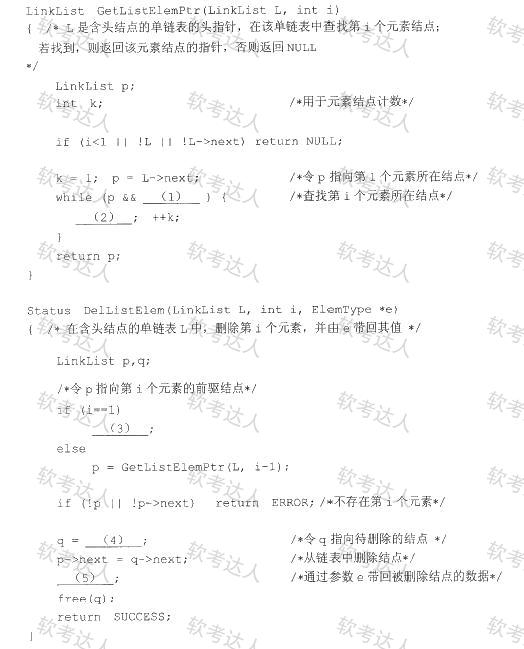 阅读以下说明和C代码,填写程序中的空缺,将解答写入答题纸的对应栏内。