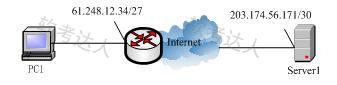 PC1接入Internet的拓扑如下图所示,其中Server1为Web服务器,则PC1的Internet协议属性参数的配置中,IP地址可能为( ),默认网关为( )。