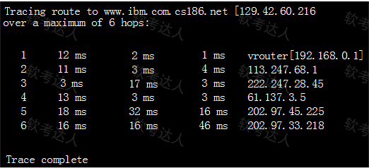 tracert -w 6 www.ibm.com