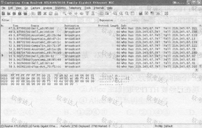 某一网络由于网关故障不能进行Internet接入,采用抓包工具捕获的结果如下图所示。图中报文的协议类型是( ),网关的IP地址可能为( )。